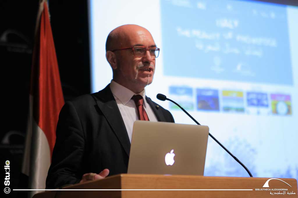 Peacock was commissioned by the Italian Embassy to arrange the organization of this traveling exhibition, during its stop in Egypt, where it was hosted at the Bibliotheca Alexandrina, in July 2018.