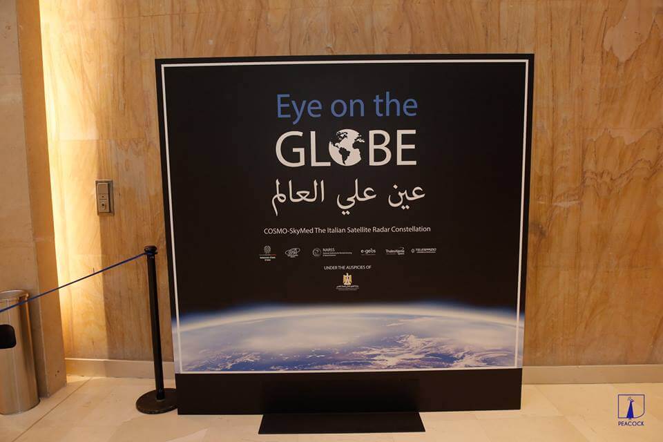 As the leading Art Management company in Egypt, Peacock for Art was commissioned by the Italian Embassy in Cairo to organize the scientific exhibition “Eye on the Globe” by Cosmo-SkyMed and produced by ‘Laboratorio Rosso’, at the Heliopolis Hilton in Cairo.